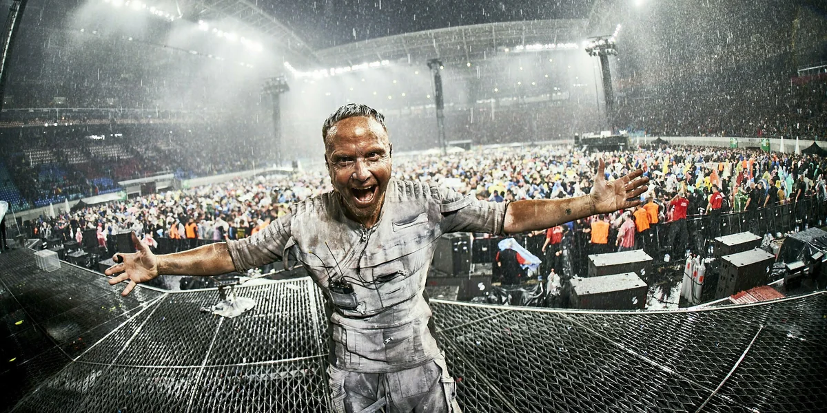 Für Till Lindemann ist das hier ein Heimspiel. Schließlich wurde Rammsteins Frontsänger in Leipzig geboren. Und die Band spielte ihr erstes Konzert 1994 in der Stadt, in einem kleinen Zentrum für Alternativkultur namens „naTo“. Nun kommen 40.000 Menschen in die ausverkaufte Red Bull Arena – an zwei Tagen hintereinander. Ganz Leipzig scheint in Aufruhr, Straßen werden gesperrt, ein Unwetter ist zudem angekündigt, die Lokalpresse startet den „Liveticker zum Rammstein-Tag“.