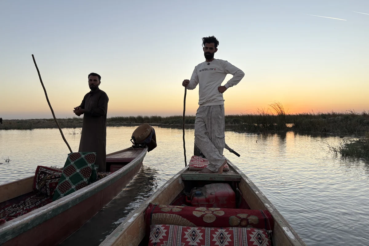 Das zeigt sich in den Sumpfgebieten im Südosten des Irak. Mustafa Mohsen ist einer der sogenannten Marsch-Araber, die heute noch in den Märschen leben. Er navigiert sein Holzboot mit Dieselmotor durch das Netz an Wasserläufen, durch niedriges Wasser und Schilf. An einem Ausläufer zeigt er auf verlassene Schilfhäuser: „Früher haben hier Menschen gewohnt. Der Wasserstand war hoch, das gesamte Gebiet war überflutet“, erklärt Mohsen. Vor etwa fünf Jahren sei das Wasser zurückgegangen, auf rund anderthalb Meter gesunken. Ungefähr 150 Häuser seien in dem Gebiet gewesen, mit rund fünf bis zehn Leuten pro Haushalt. „Als der Wasserstand sank, zogen die Menschen um, auf der Suche nach Wasser.“