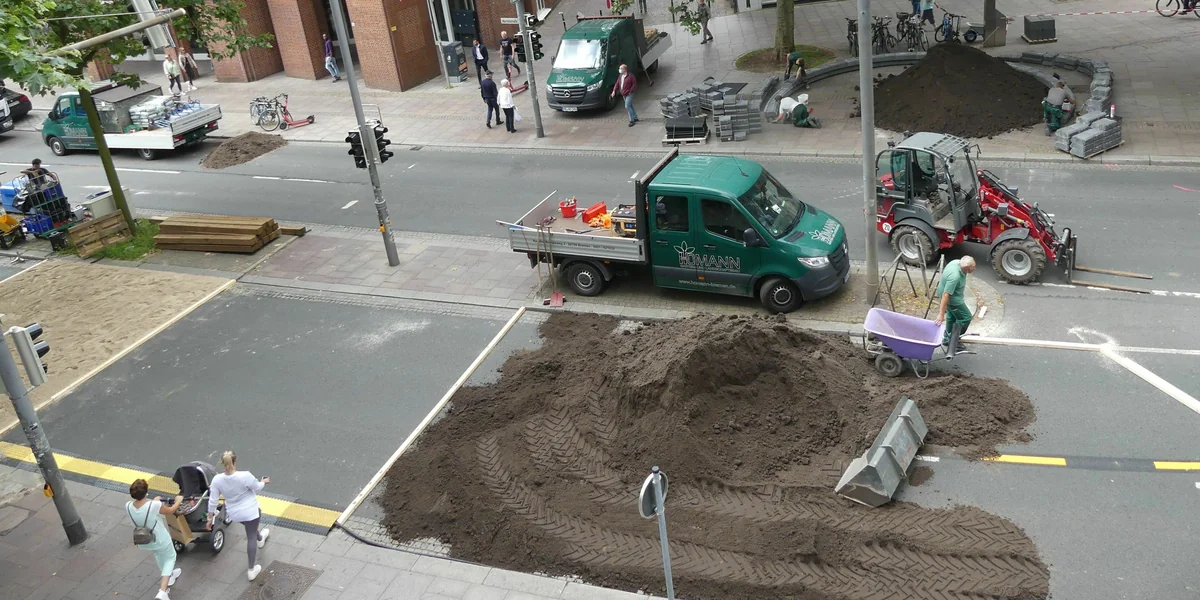 Ganz in Besitz nehmen können sie Fußgänger*innen und Radler*innen bis 10. August auf dem kurzen Teilstück vom Presseparkhaus bis zur Verkehrsinsel vom Überweg Pieperstraße.