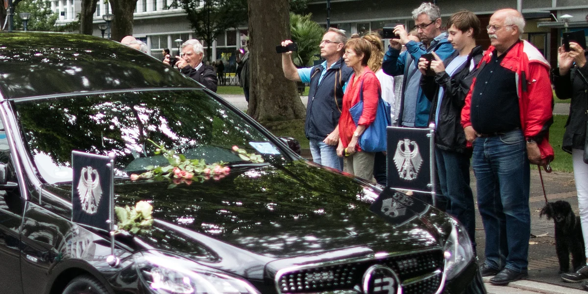 In Ludwigshafen müssen sich die Menschen dann am Nachmittag im Vorbeifahren von ihrem Ehrenbürger verabschieden. Kohl war nicht öffentlich aufgebahrt, er wird nicht im Ludwigshafener Familiengrab beerdigt. Auch das Kondolenzbuch war nur im Dom zu Speyer ausgelegt. Als wäre es eine Pflichtübung, fährt der Leichenwagen den Sarg und einen irritierend roten Kranz aus Rosen, den Meike Kohl-Richter ihrem Mann gewidmet hat, fast ungebremst an den Honoratioren und Bürgern vorbei. Das dauert nur Augenblicke, dann ist der Konvoi Richtung Rhein verschwunden.