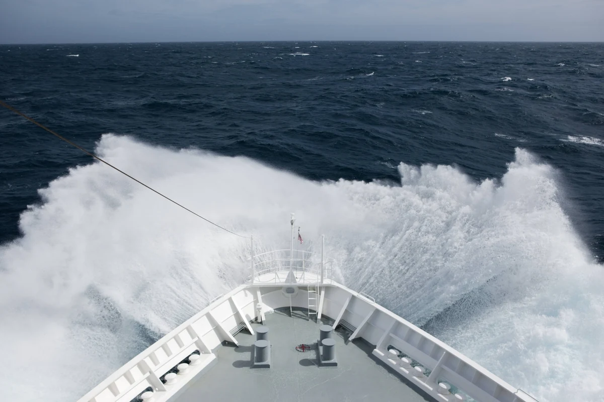 D ie Wellen, die gegen das Schiff klatschen, sind furchteinflößend hoch. Ich kann von innen sehen, wie die Wassermassen auf den verglasten Aussichtsraum prallen. Die berüchtigte Drake-Passage auf dem Weg in die Antarktis hält ihr Versprechen. Viele Passagier:innen sind seekrank in den Kabinen geblieben, im Speisesaal sind die Stühle fest gekettet.