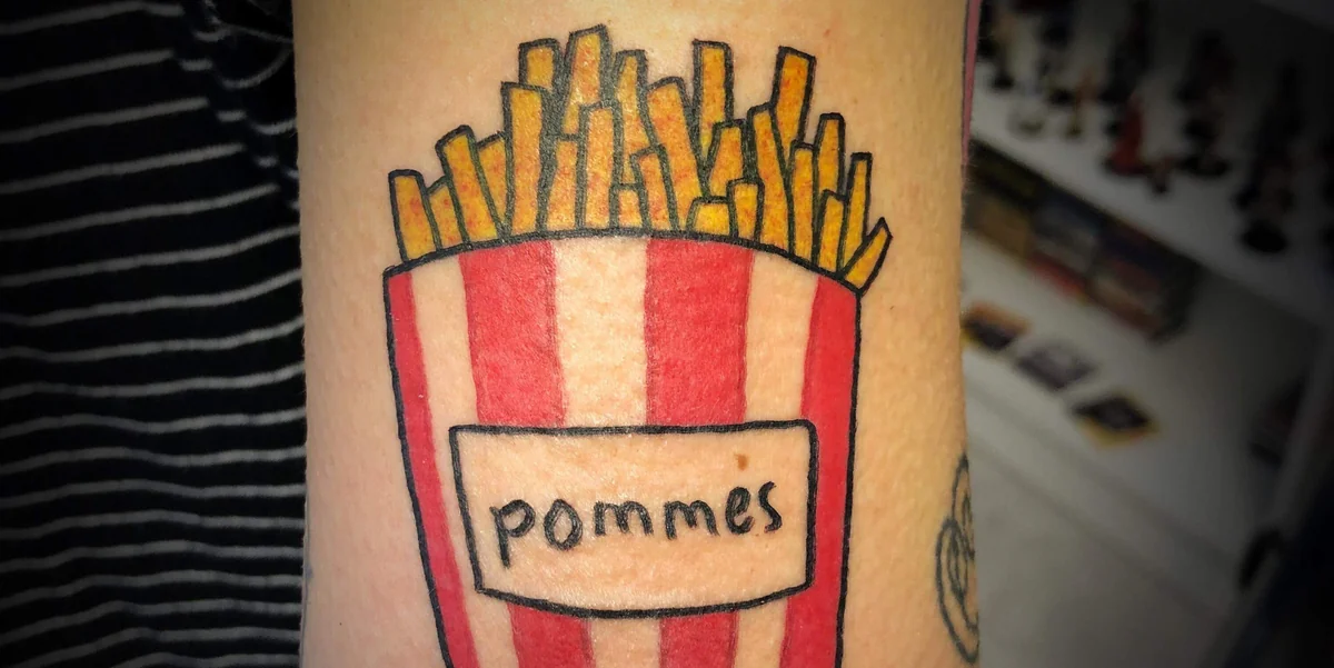 Eine These, die Jule aus Berlin widerzuspiegeln scheint: Die 29-Jährige hat sich eine Portion Pommes auf ihren Arm stechen lassen, weil Pommes sie „einfach an Kindheit und Schwimmbad und frei sein“ erinnern. „Die neoliberale Gesellschaft fordert ständig unsere Anstrengung“, sagt Häusle-Paulmichl. Im Umkehrschluss wird die Leistungsverweigerung zum Tabu – auch jene, ein intellektuell aufgeladenes Tattoo zu tragen. Damit wären wir wieder beim Potenzial zur Irritation.