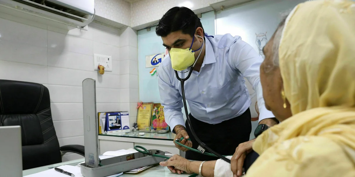 Der Lungenmediziner Vikas Oswal behandelt seit Jahren TB-Patienten. Freitags ist er in einem der hellen Räume der städtischen Shatabdi-Ambulanz anzutreffen. Hier wird jeder kostenfrei versorgt. Bei einer aktiven Tuberkulose ist oft die Lunge betroffen. Das Begutachten von Thorax-Röntgenbildern gehört zur Routine. Tuberkulose kann aber auch Organe wie das zentrale Nervensystem oder die Lymphknoten befallen. Bei zwei noch sehr jungen Patient:innen, dessen Onkel an einer medikamentenresistenten Tuberkulose starb, tastet Oswal deshalb den Hals ab.