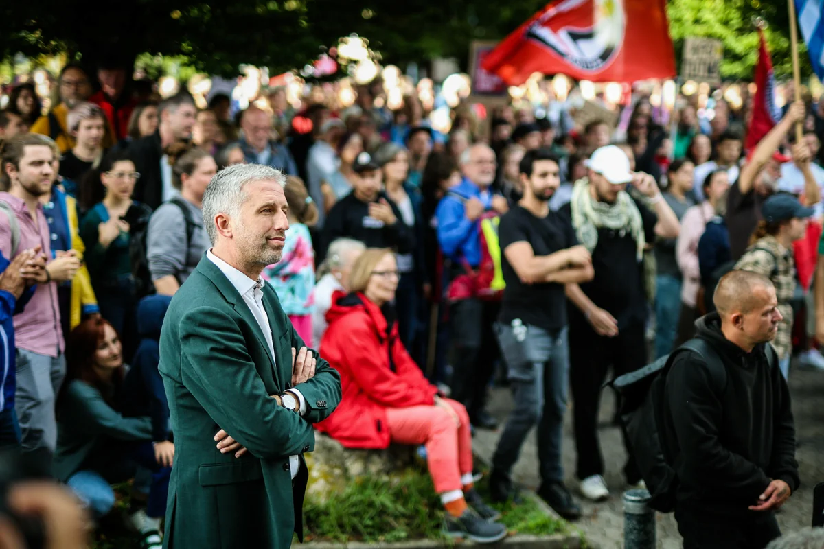 Viel Wind also. Im Vorfeld und am Abend selbst. Mehrere Gegendemonstrationen mit 2000 Teilnehmern, ein großes Polizeiaufgebot. Die 800 Plätze in der Hermann-Hepper-Halle wurden nach strengen Regeln vergeben und waren schnell weg. Es gab sogar eine Liste mit Nachrückern. Trotzdem waren die Zuschauerreihen, so sah man’s im Stream, höchstens zu 70 Prozent besetzt und wurden, nachdem Protestierende von der Polizei aus der Halle hinausgeleitet worden waren, noch leerer.