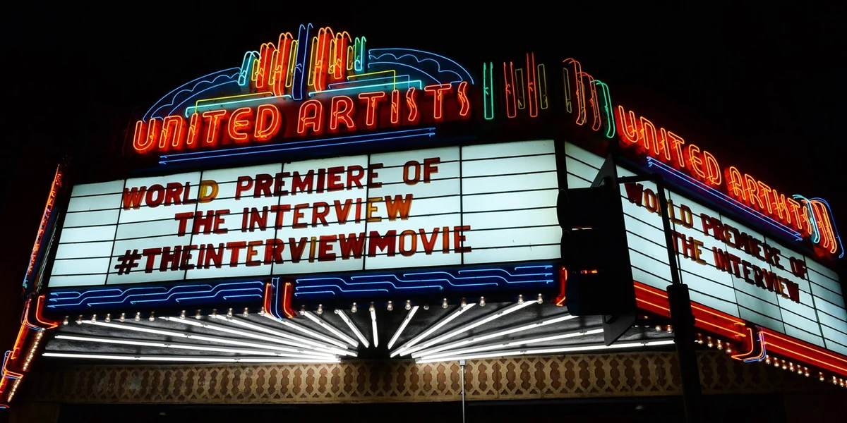 Darin geht es um ein fiktives Mordkomplott gegen Nordkoreas Machthaber Kim Jong Un. Um die Ausstrahlung zu verhindern, wurden Anspielungen auf die Terroranschläge vom 11. September 2001 gemacht, Amerikas großes Trauma. Sony zog daraufhin den für den ersten Weihnachtsfeiertag geplanten Kinostart zurück.
