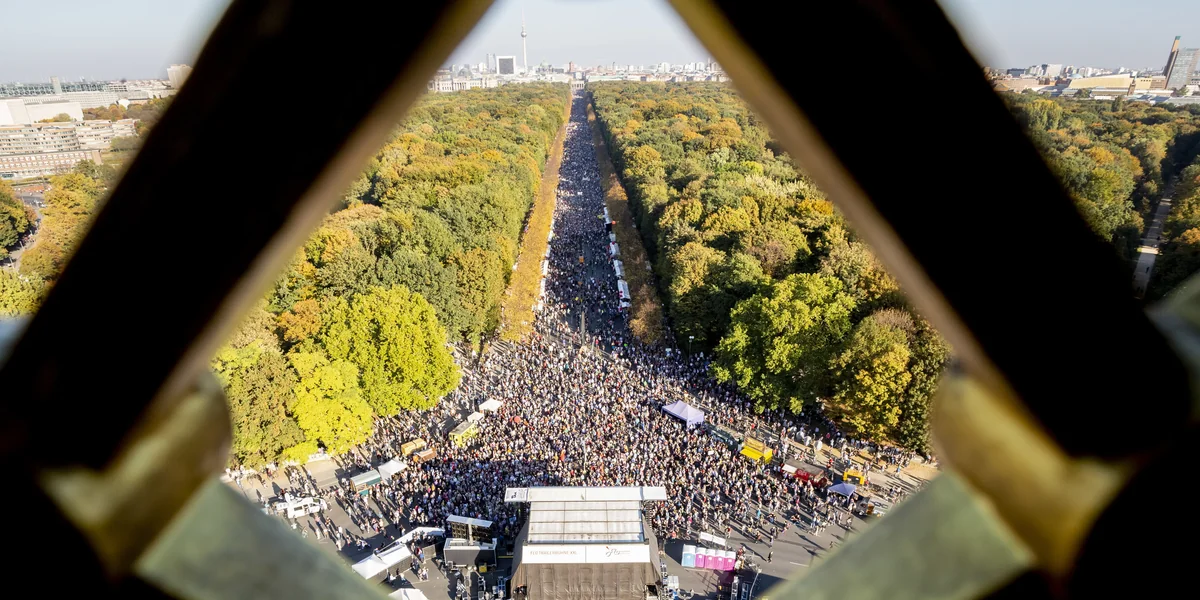 Das Bündnis hatte 40.000 Menschen zu der Demo erwartet. Um 15 Uhr am Samstag schätzte es die Zahl dann auf 150.000, um 17.15 korrigiert es die Schätzung auf 242.000. Eine größere Demo gab es in Berlin seit Jahren nicht.