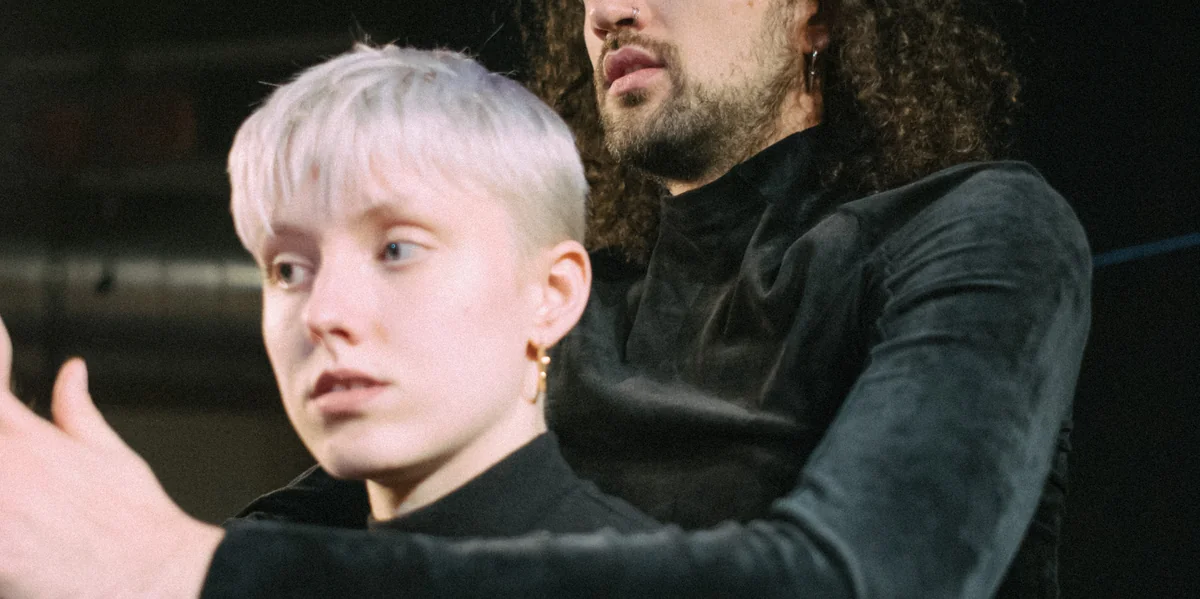 Im Vergleich dazu scheint die Performance eines weiteren Duos, zu dem sich die hörende Tabea Xenia Magyar und der Taube Jan Kress zusammengetan haben, deutlich abstrakter in Richtung Tanz gedacht zu sein. – Allerdings gibt Franziska Winkler im Gespräch deutlich zu erkennen, dass der Begriff „Tanz“ im Deafhood-Kontext nicht wirklich passe: es handele sich um „Gebärdenpoesie“.