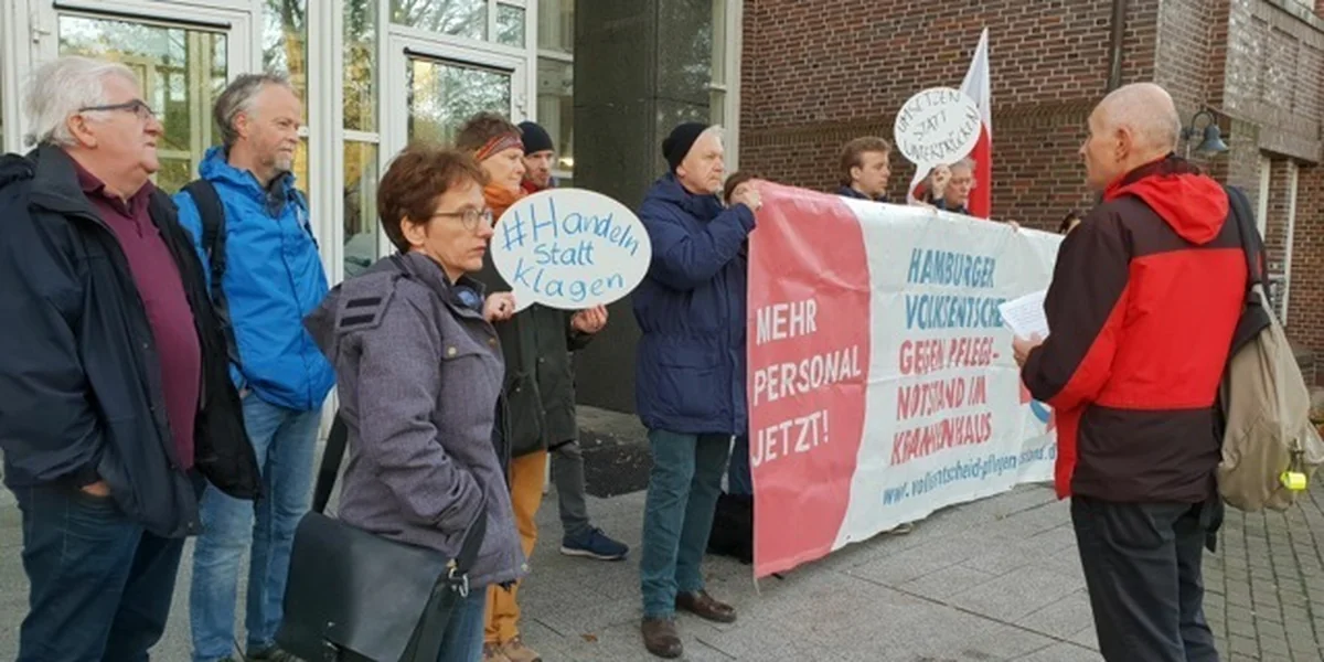 Zu Beginn des Prozesses hielt die Volksinitiative eine Kundgebung vor der Tür, und forderte „mehr Personal jetzt“. Denn der harte Kurs von Rot-Grün zeigt sich auch darin, dass die Fraktionen die Gespräche über eine mögliche Einigung nach nur einer Runde abbrachen. Kommende Woche wird der Senat eine Klage vor dem Verfassungsgericht einreichen, um die Initiative zu stoppen.