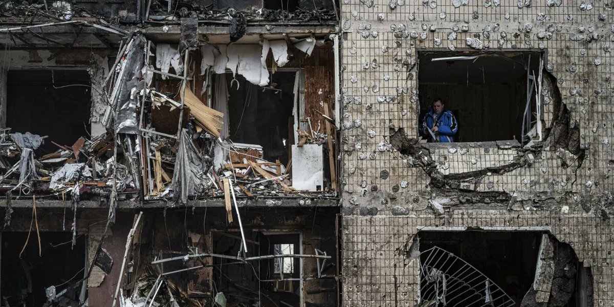 Das geschah zum Beispiel bei einem Gebäude im Kyjiwer Stadtbezirk Solomjanka. Herabfallende Trümmer setzten die oberen Stockwerke des Hauses in Brand. Am Abend nach dem Einschlag sammelten Freiwillige herumliegenden Müll ein und ersetzten die zerstörten Fenster durch Sperrholzplatten, um die Wärme im Haus zu halten. Ein Teil des Gebäudes wird wohl unbewohnbar bleiben. Derzeit prüfen Ingenieure, ob die Bewohner des Hauses zurückkönnen. Etwa 30 Familien leben temporär in Ausweichquartieren.