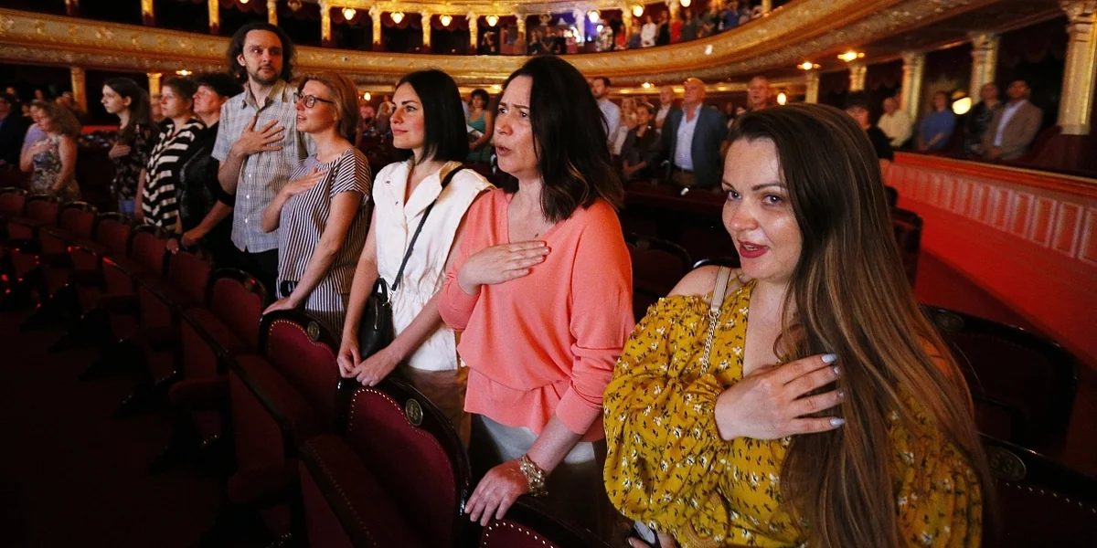 Einer dieser Klubs kommt im Lwiwer Museum für Volksarchitektur zusammen, einem Freilichtmuseum. Geflüchtete singen hier mit Einheimischen ukrainische Volkslieder, um ihre Aussprache zu verbessern und ihren Wortschatz zu erweitern. Wenn man sie singen hört, ist es schwer zu glauben, dass für einige von ihnen Ukrainisch nur die Zweitsprache ist.