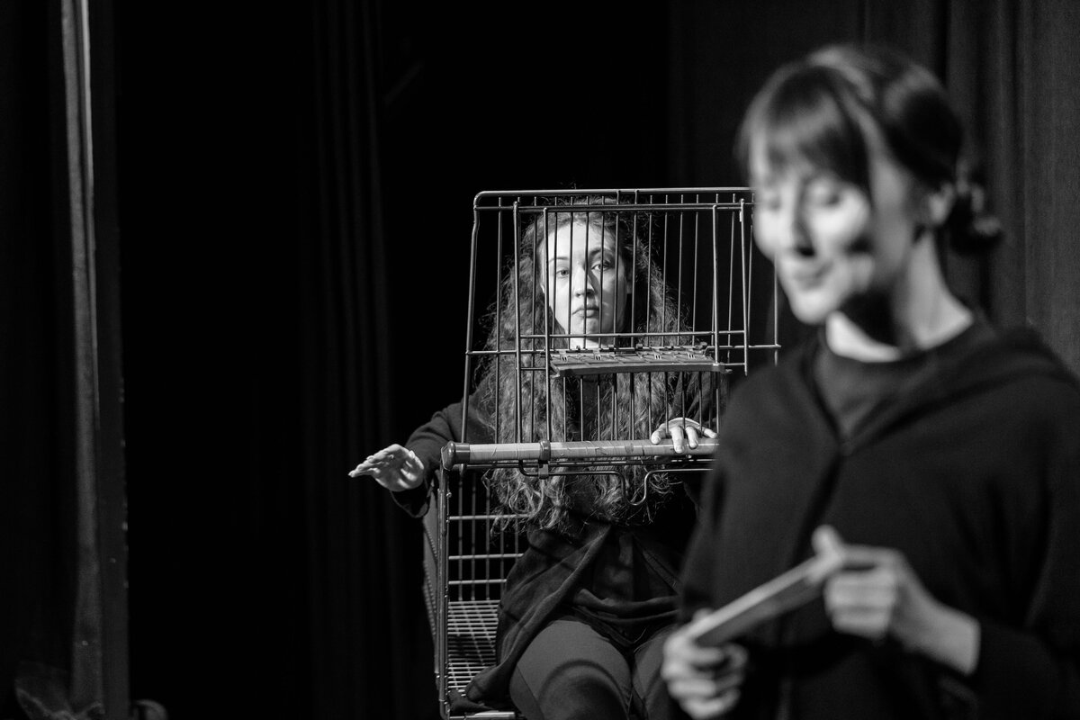 Das zeigt sich in der „Geschichte der Fluchttiere“. Die Inszenierung arbeitet mit wenigen, aber klug eingesetzten Requisiten. Mit dabei sind zwei Supermarkt-Einkaufswagen, die je nach Szene als Mausefalle, Rednerpult, Arbeitstisch oder Papageienkäfig dienen. Sie sind nicht nur Symbol für ein Leben ohne Wurzeln, sondern auch sehr praktisch, sagt der Regisseur: „Wenn wir irgendwo anders spielen, können wir solche Wagen einfach ausleihen.“