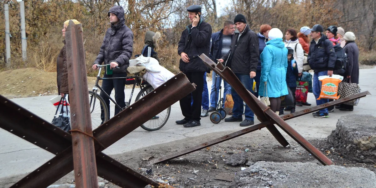Checkpoint bei Luhansk zwischen ukrainisch kontrolliertem Gebiet und dem der Rebellen. Foto: imago