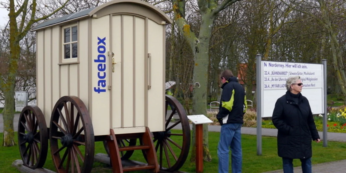 In einem umgebauten Badekarren auf Norderney können Gäste Grußbotschaften aufnehmen. Der Karren heiß „Facebox“ und hat nun den Ärger des Online-Netzwerks Facebook auf sich gezogen.