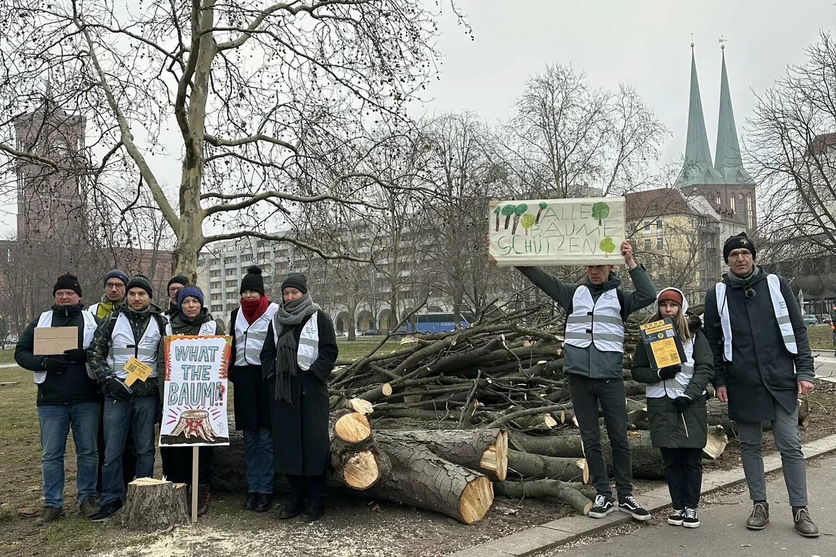 Alte, große und gesunde Bäume seien als Temperaturregulatoren und Schattenspender wichtig. Zum Protest gegen die Fällungen hatte der BaumEntscheid unter dem Motto „Hände weg von unseren gesunden Bäumen“ aufgerufen.