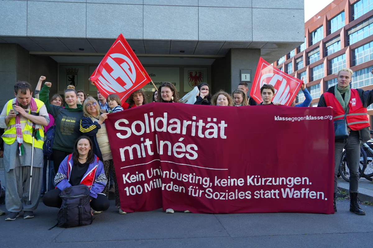 Es ist der Gerichtstermin von Inès Heider, Sozialarbeiterin aus Neukölln. Sie trägt Sportjacke und Jeans. Knapp zwei Jahre zuvor, im Sommer 2023 hatte Heider in einer E-Mail über den internen Verteiler ihres Trägers auf einen GEW-Streik hingewiesen. In der Mail zitiert sie Kolleg:innen, die die Sparmaßnahmen als „menschenverachtend“ bezeichnen. Der Träger wirft ihr vor, zu „wilden Streiks“ aufgerufen zu haben und kündigt ihr fristlos. Dabei war Heider im Wahlvorstand des Betriebsrats und stand unter Sonderkündigungsschutz. Obwohl in erster Instanz entschieden wurde, dass die Kündigung rechtswidrig sei, ging der Träger in Berufung.