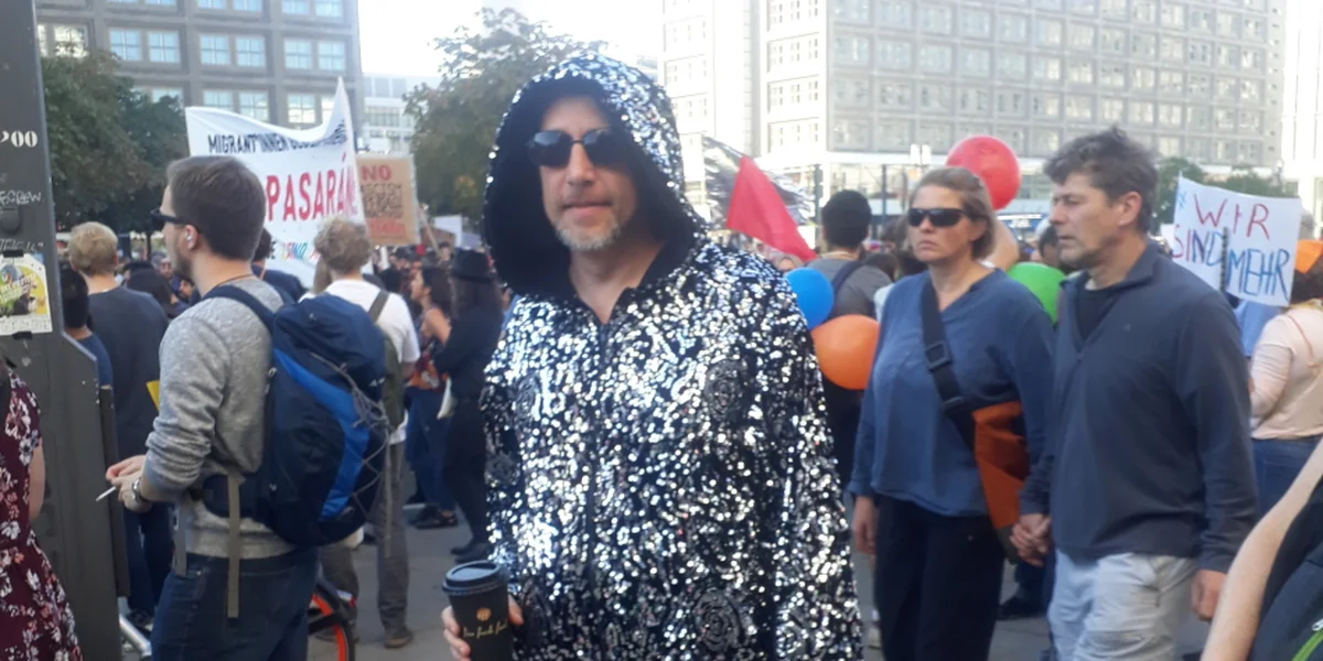 Er hat trotzdem Spaß – und findet den Unteilbar-Gedanken genau richtig: „Gegen rechts zu sein sollte keine Extremposition sein, sondern normal.“ Den Anzug hat er an, weil ein bisschen Glitzer ja nie schaden könne.