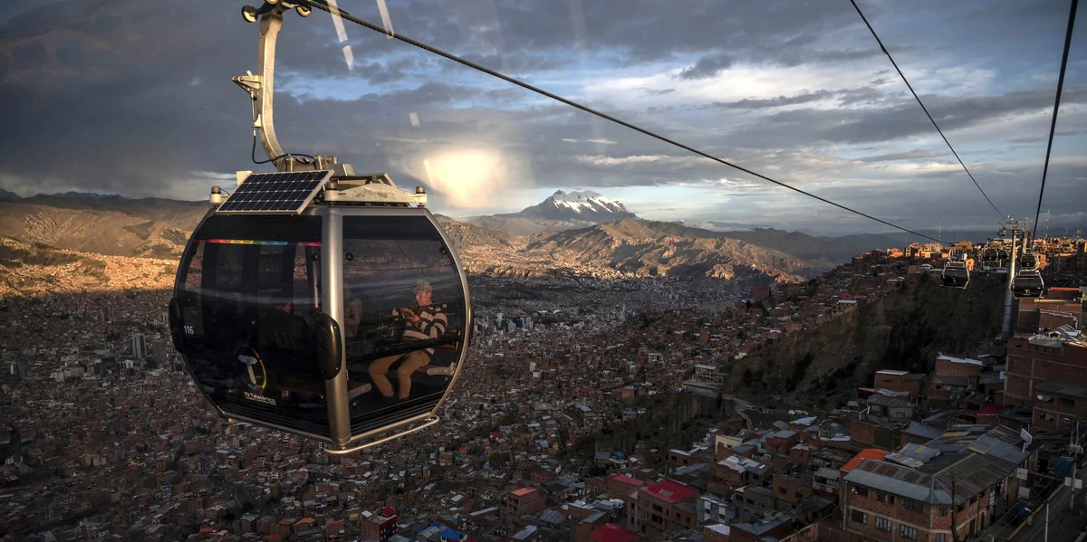 Ursprünglich hatte dem jüngst zurückgetretenen sozialistischen Staatpräsidenten Evo Morales 2014 eine Hochbahn vorgeschwebt. Die sollte die rasant wachsende arme Oberstadt El Alto mit dem Zentrum von La Paz verbinden, um den völligen Verkehrskollaps durch Hunderttausende Pendler morgens und abends gerade noch abzuwenden. Doch die Topografie mit mehreren tief eingeschnittenen Canyons und die extrem dichte Bebauung im Ballungsraum mit 1,8 Millionen Einwohnern sprachen für eine Seilbahn.