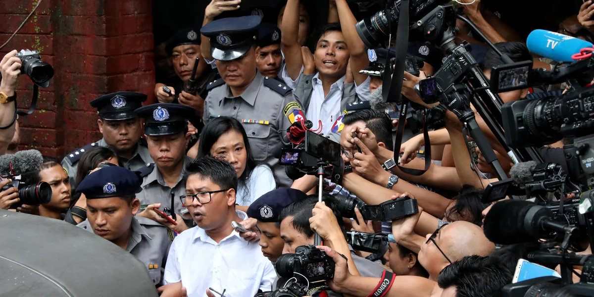 Wa Lone und Kyaw Soe Oo zählten zu den wenigen myanmarischen Journalisten, die aus dem Krisenstaat Rakhine berichteten, wo eine Militäroperation 2017 rund 700.000 muslimische Rohingya über die Grenze nach Bangladesch trieb, wo sie von Vergewaltigung, Brandstiftung und Mord berichteten. Regierung und Militär leugneten die Vorwürfe stoisch. Dann brachten die beiden Reporter das Lügengebäude zum Einsturz, als sie in einem Report geständige Täter zur Sprache kommen ließen. Wenig später wurden sie wegen Verrats von Staatsgeheimnissen verhaftet.