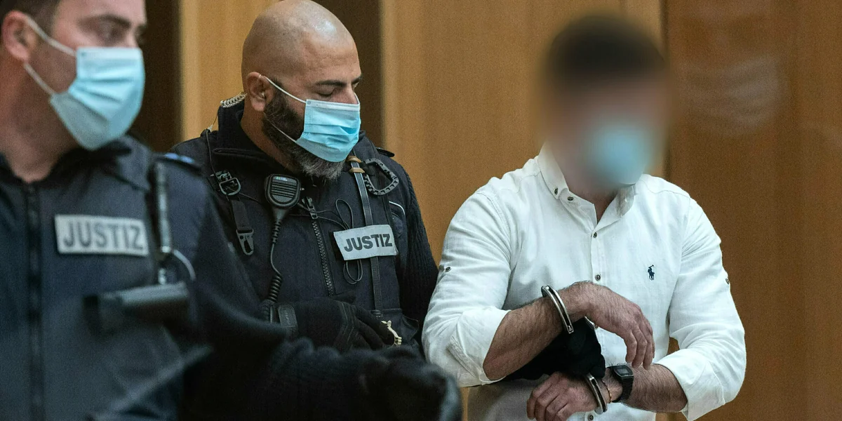 Einer der Angeklagten wird vor der Verkündung des Urteils in den Gerichtssaal geführt Foto: Bernd Weißbrod/dpa