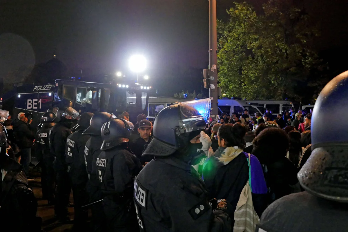 Zuvor hatte die Polizei am Dienstagmorgen eine Straßenblockade von Palästina-Aktivist*innen in Berlin-Friedrichshain aufgelöst. Auch dort gab es mehrere Festnahmen, Menschen wurden in Gewahrsam genommen.