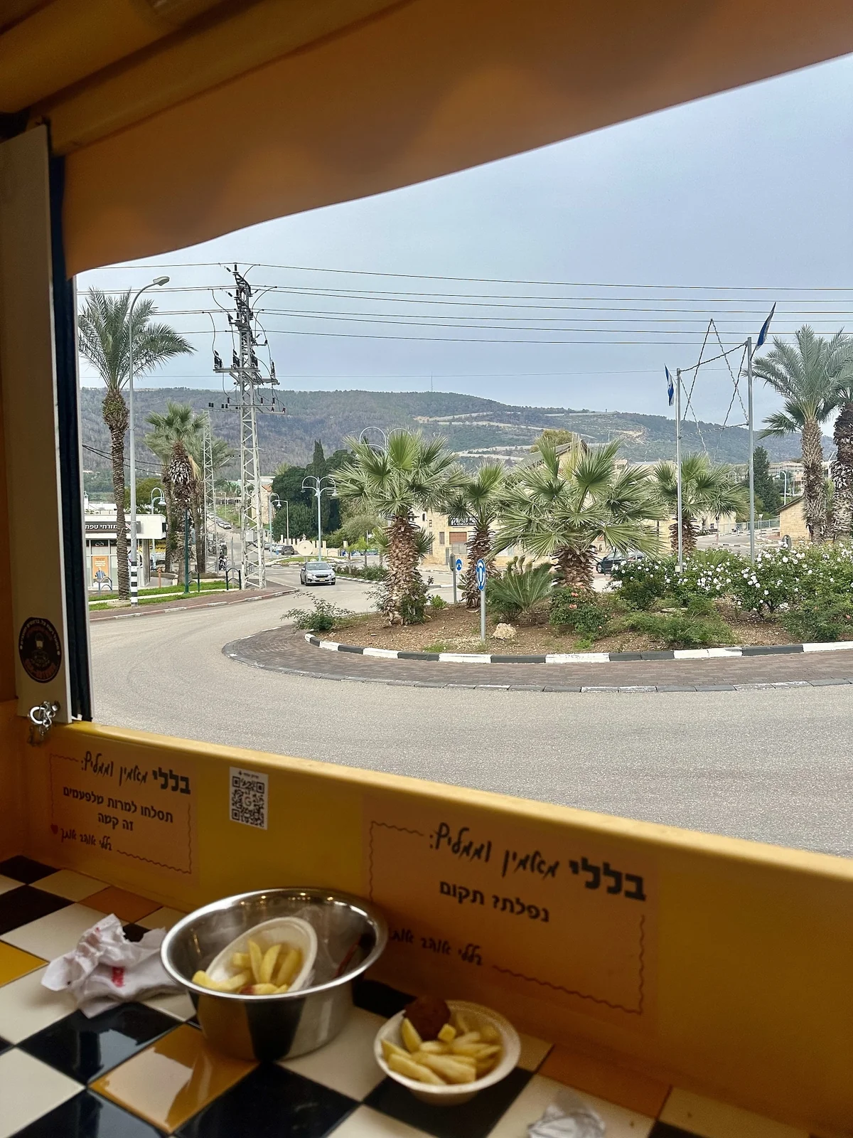 Seit Mitte Oktober ist Schlomi größtenteils evakuiert. Etwa 9.000 Menschen leben normalerweise dort, in der nördlichsten Kleinstadt Israels. Noch 1.000 sollen geblieben sein. Auch das öffentliche Leben ist zum Erliegen gekommen. Einer der wenigen geöffneten Läden verkauft Falafel und Pommes an die vielen, nahe der Stadt stationierten Soldaten.