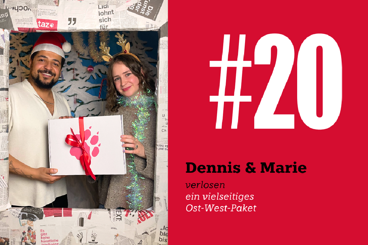 Dennis Chiponda und Marie Eisenmann von der taz Panter Stiftung verlosen etwas, das Ost und West miteinander verbindet.