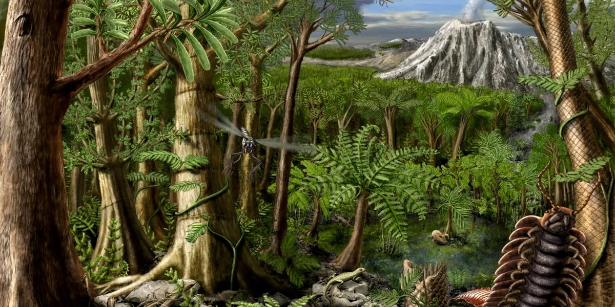 „Ohne Pflanzen gäbe es keine Tiere an Land. Vor etwa 432 Millionen Jahren entstanden an Land die ersten aufrechten Pflanzen und veränderten unsere Erde nachhaltig“, erklärt Gee. Vor etwa 385 Millionen wuchsen schon frühe Bäume. Spätestens im Karbon, also vor etwa 385 bis 300 Millionen Jahren, gab es bereits gewaltige Tropenwälder, mit bis zu 40 Meter hohen Bäumen.