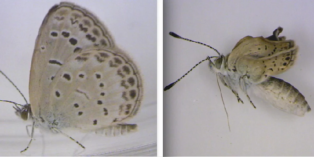 Ein japanisches Forscherteam hat in einer umfangreichen Studie bei drei Generationen Faltern aus der Familie der Bläulinge schwere Mutationen am Körperbau festgestellt und führt die Strahlenbelastung als Ursache dafür an. Damit ist zum ersten Mal offenbar der Hinweis gelungen, dass die Strahlung von Fukushima die Evolution der Lebewesen in der Umgebung massiv beenflusst.