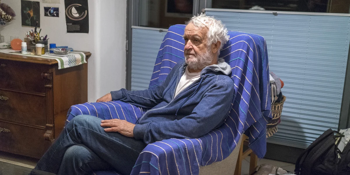 Karl Fischer ist 76 Jahre alt und Materialist. „Nach Marx“, wie er sagt: „Die Materie ist die Grundlage, auf der sich das Geistige entwickelt.“ Er interessiert sich für Atomphysik und für das Weltall. An den Wänden in seinem Zimmer im Alleehaus der Allemende hängen Bilder von Monden und Planeten. In einer Ecke hängt ein Bild von Che, mit dem berühmten Satz: „Seien wir realistisch, versuchen wir das Unmögliche.“ Eine Peace-Flagge klemmt eingerollt zwischen Wand und Bücherregal.