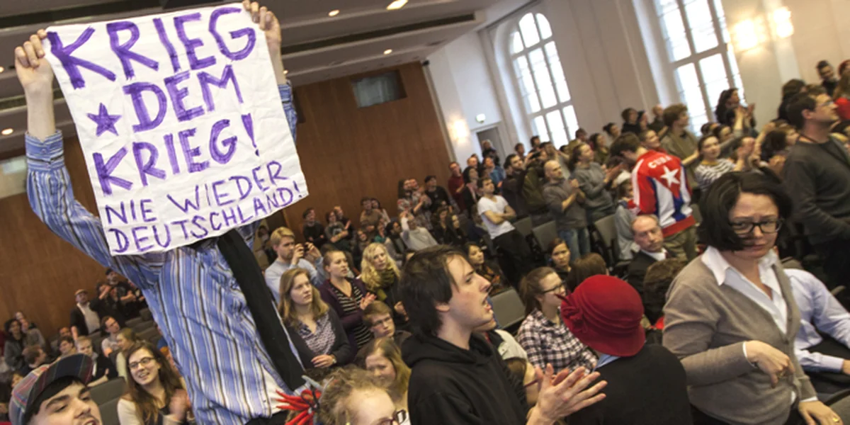 Naja, nicht überbewerten. 300 unter 200.000 Studenten, die mal gegen "die da oben" stänkern wollen, andere Meinungen aus Prinzip nicht dulden und sich abends bei der Bionade auf die größte Heldentat ihres Lebens auf die Schultern klopfen. Sehr kindisch, aber so sind Studenten halt. Dabei gibt's genug sachliche Argumente gegen die Einsätze in Afghanistan etc. Aber das kann ein Erstsemester wohl noch nicht wissen. Schade nur, dass nun andere sich mit diesen gewaltsam durchgesetzten Meinungsverboten bestätigt fühlen werden. Ich sehe schon die "Auschwitz wurde nicht von Pazifisten befreit"-Parolen.