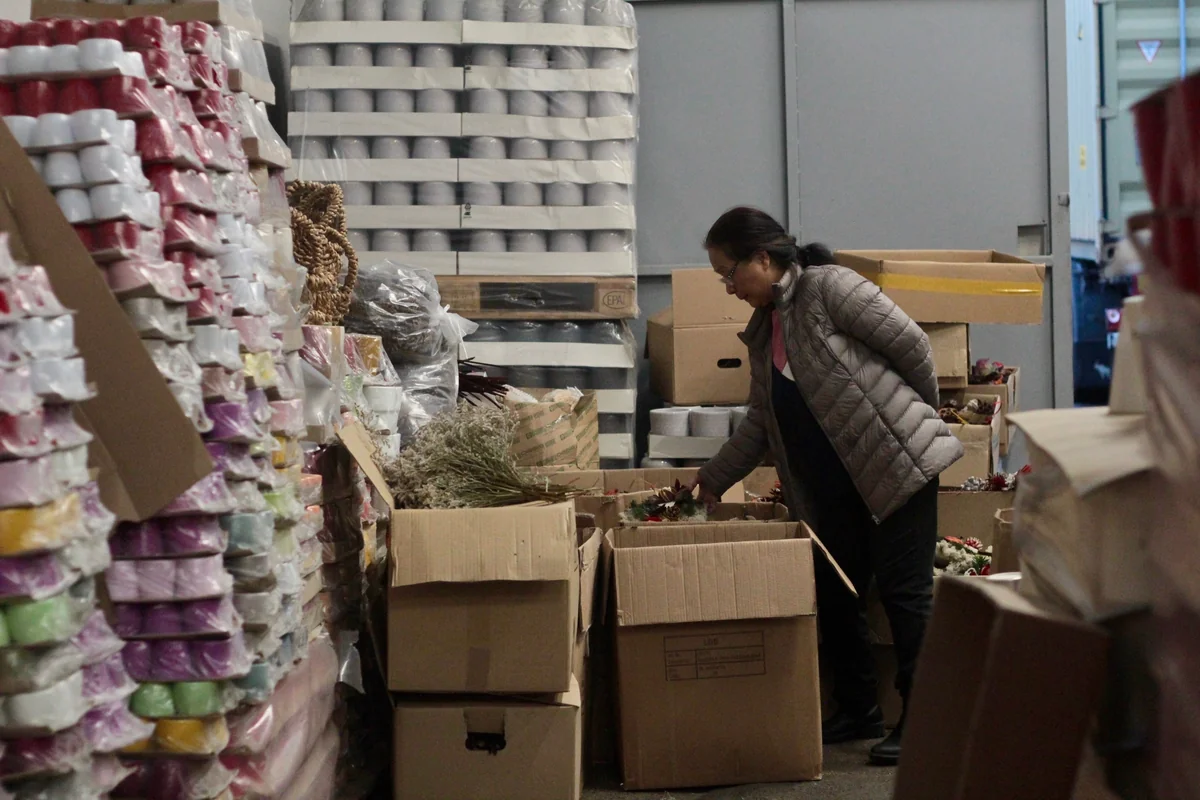 Der Blumengroßhandel befindet sich im Industriegebiet Lichtenberg – nicht weit von dem vietnamesischen Đồng Xuân Center. Meine Mutter parkt das Auto und schnappt sich einen Wagen. Zusammen gehen wir durch einen dicken Plastikvorhang und gelangen in eine große Halle mit verschiedenen Händler:innen: deutsch, türkisch, vietnamesisch.