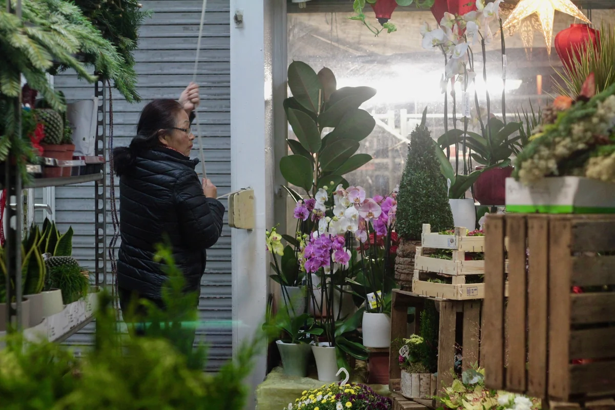Deutsche Florist:innen sehe ich hier keine. Vor allem sind es Vietnames:innen, die sich gegenseitig grüßen. Alle sind beschäftigt, aber nehmen sich Zeit für Smalltalk. Sie fragen, ob ich die Tochter bin, wie alt ich bin, ob ich schon arbeite.