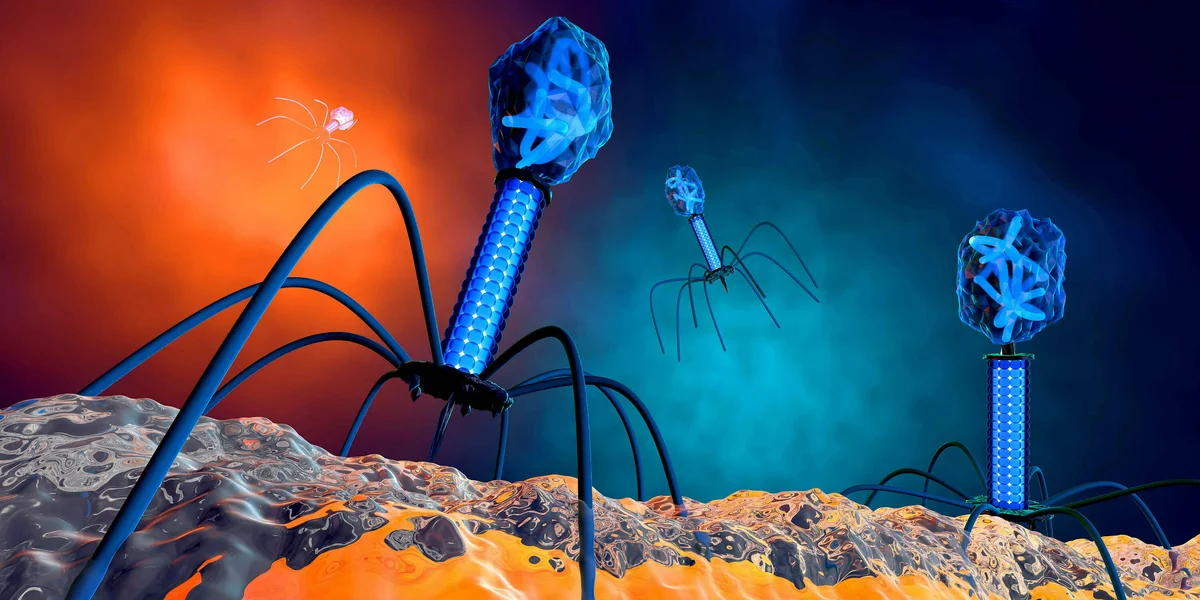 Vor allem die sogenannten Bakteriophagen, also „Bakterienfresser“, sind die neuen Hoffnungsträger in der Medizin. Bakteriophagen zählen wie alle Viren nicht zu den Lebewesen, da sie im Gegensatz zu Bakterien keinen eigenen Stoffwechsel haben. Das Besondere an ihnen: Sie befallen nicht nur tierische oder pflanzliche Zellen, sondern suchen sich Bakterien als Wirte. Die Phagen dringen in die Bakterienzelle ein, wo sie entweder im Erbgut integriert schlummern oder sich von der Maschinerie des bakteriellen Erbmaterials vervielfältigen lassen und dann das Bakterium von innen zerstören, womit ein Vielfaches an Viren und auch Nährstoffe freigelassen werden. Das ist ein ganz anderer Weg, als die Wirkung von herkömmlichen Antibiotika. Deshalb funktionieren die Phagen selbst dann, wenn die Bakterien bereits eine Resistenz entwickelt haben.