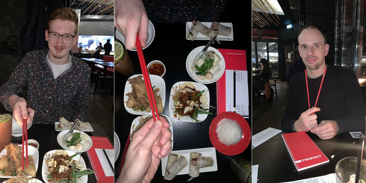Für eine offizielle Stabübergabe trafen Adrian und ich uns in einem Restaurant, das zum wachsenden „Asia Tapas“-Segment gehört. Es gibt also kleine Portionen, von denen man sich viele zum Teilen in die Mitte stellt, so wie es in anderen Ländern ohnehin üblich ist. Die Buffetisierung der Kleinstbestellung, ein Prinzip, das sich ruhig auch hier durchsetzen möge.