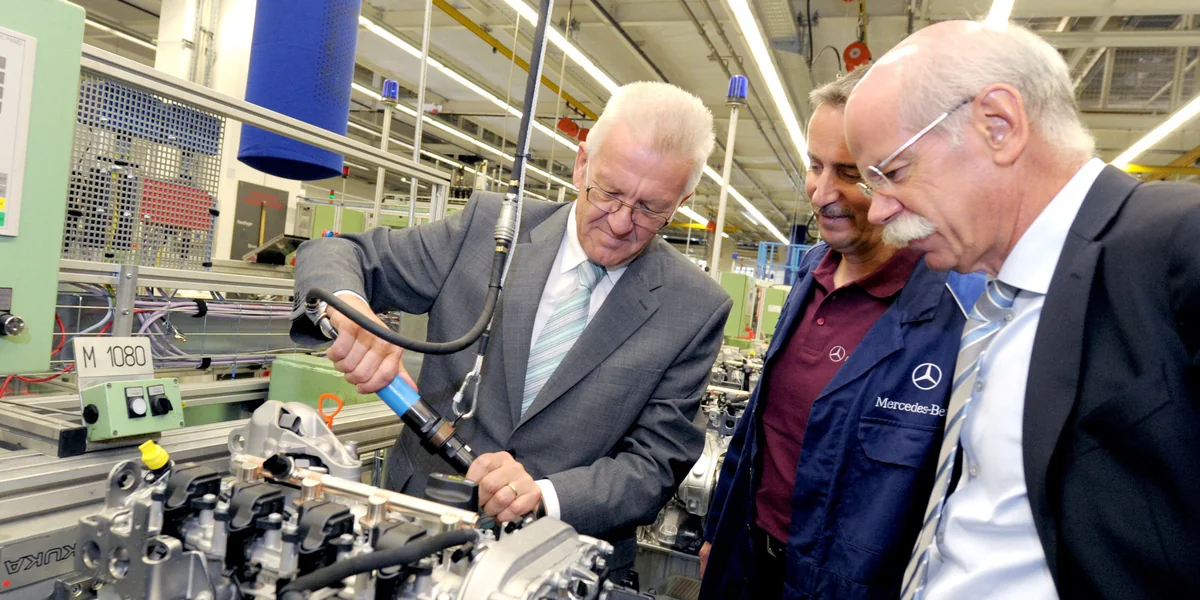 Daimler betont auf seiner Webseite, „kontinuierlich an der Optimierung des klassischen Verbrennungsmotors“ zu arbeiten. Dieser werde „auch weiterhin das Rückgrat der Mobilität bleiben“. Zur von den Grünen propagierten Verkehrswende passt das nicht.