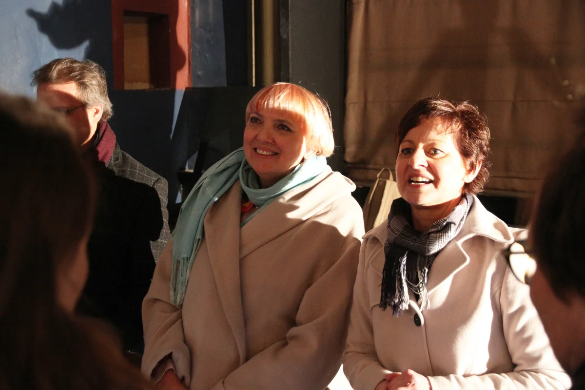 Unhaltbare Zustände, sagen die Schauspieler. Ein Provisorium, hieß es zunächst. Doch als im Herbst plötzlich ein unerwartet großes Loch im Stadthaushalt klaffte, schob man die Theatersanierung auf die lange Bank. Der Schimmel breitet sich weiter aus. Nicht umsonst ist das Stadttheater gerade eines der heißen Wahlkampfthemen in Landshut. So weicht denn auch die Begeisterung von Claudia Roth recht schnell, als Sigi ihr die Hintergründe erklärt.