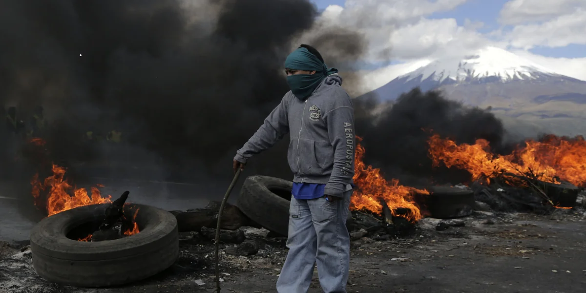 Im Rahmen der Demonstrationen waren auch wichtige Landstraßen blockiert worden. Fotos zeigten brennende Reifen auf der Straße die von der Haupstadt Quito ins südlicher gelegene Ambato führt. Im Hintergrund: die imposante Kulisse des Cotopaxi.