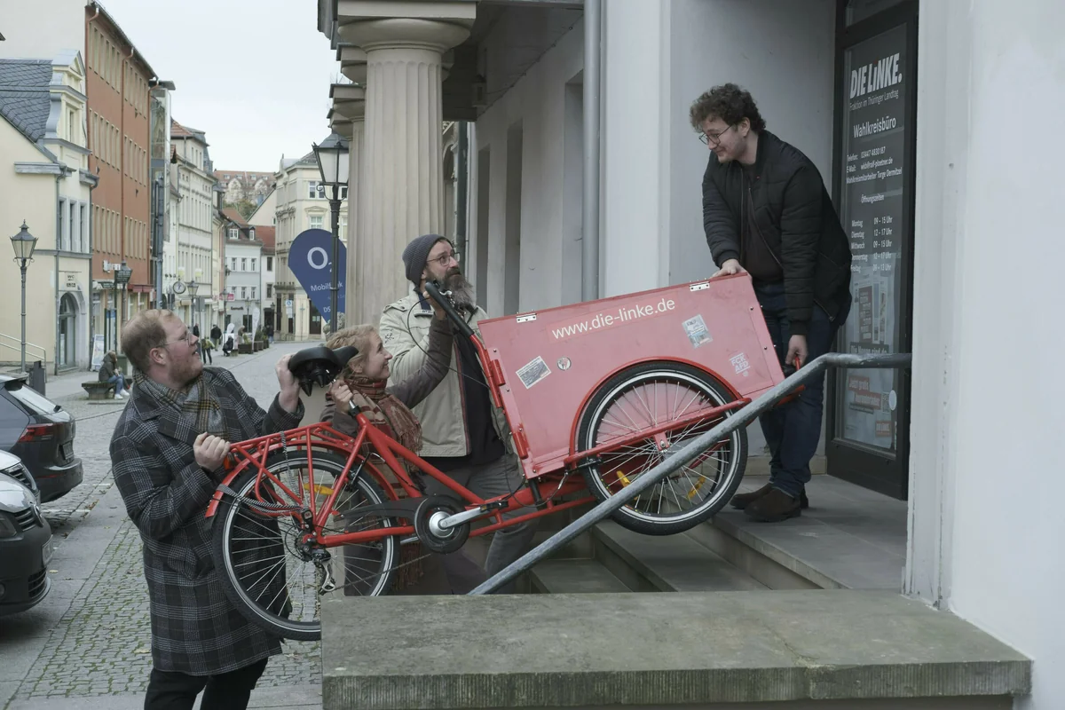 In Altenburg geht es zeitgleich mit der Europawahl im kommenden Juni um die Kommunal- und Kreistagswahlen. Im September darauf geht es bei den Landtagswahlen darum, dass die Partei im einzigen Land mit linkem Ministerpräsidenten nicht abstürzt. Ein älterer weißer Mann biegt um die Ecke, der frühere Landrat von der CDU. Es gibt ein großes Hallo, scherzend unterhalten sich die Genossen von der Linken mit ihm. Zumindest von ihrer Seite gibt es da keine Berührungsängste.