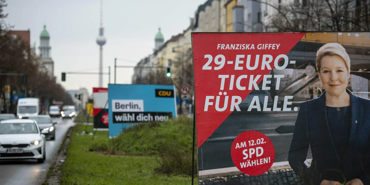 Ob sie das durchhalten bis zum 12. Februar? Die SPD jedenfalls will die Debatte über das 29-Euro-Ticket zu einem zentralen Wahlkampfthema machen. Auch das einzige an diesem Montag vorgestellte Großplakat mit inhaltlichen Forderungen zielt genau darauf. Ansonsten dominiert Franziska Giffey die Kampagne und die 1.600 sogenannten Großflächen, also frei stehende Plakate; zudem hängen die Sozialdemokraten rund 47.000 kleinere Poster auf, etwa an Laternen.