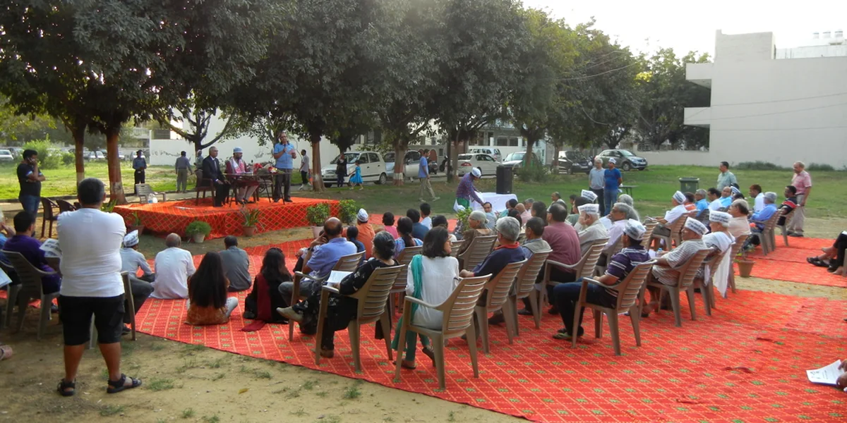 Für die Stimmen beider Welten Gurgaons wirbt hier Yogendra Yadav, Sozialwissenschaftler und einer der Spitzenpolitiker der AAP. An diesem Vormittag war Yadav noch mit einem Besen – dem Wahlsymbol der AAP - in den Gassen des alten Gurgaon unterwegs, am Nachmittag wird er auf den „Rasenflächen“ des Wohnkomplexes „DLF Exclusive Floors“ erwartet.