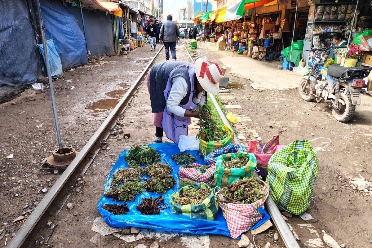 Ganz anders als in der Amazonasregion sieht das Wahlverhalten im ebenfalls indigen dominierten Süden des Landes aus. Mit kreischenden Rädern und lautem Tuten macht sich die blaue Lokomotive bemerkbar, bevor sie am Ende der Häuserzeile in der Stadt Juliaca auftaucht. Die Schienen führen mitten durch den Kräutermarkt, gelegen auf über 3.800 Metern Höhe in der Andenregion Puno an der Grenze zu Bolivien.