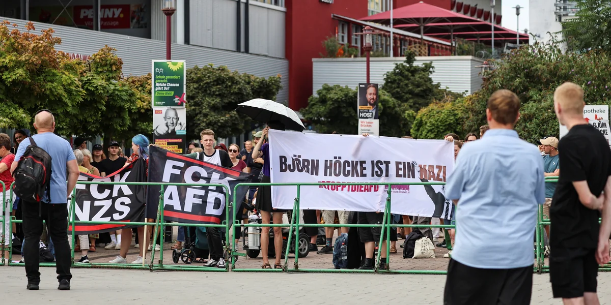 Eine Veranstaltung mit dem Thüringer AfD-Spitzenkandidaten Höcke wurde aus Sicherheitsgründen abgesagt. 2.000 Menschen hatten dagegen protestiert.