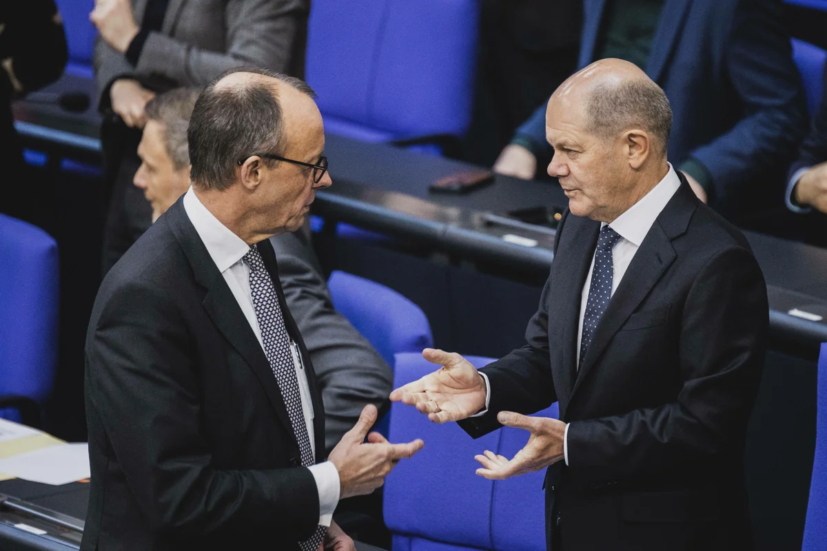Der Wahlkampf ist da. Das zeigt am Mittwoch allein der Andrang im Bundestag, die Reihen der Abgeordneten und die Besuchertribüne waren bis auf den letzten Platz besetzt. Sogar die chronisch abstinente Sahra Wagenknecht war gekommen. Selten war eine Regierungserklärung mit derartiger Spannung erwartet worden, genauer gesagt das Duell des amtierenden Bundeskanzlers mit Herausforderer und CDU-Chef Friedrich Merz. Auch die Fraktionen hatten aufgerüstet. Die Union hatte den bayerischen Ministerpräsidenten Markus Söder als Redner nach Berlin geladen, die SPD in letzter Minute Niedersachsens Ministerpräsidenten Stephan Weil akquiriert.