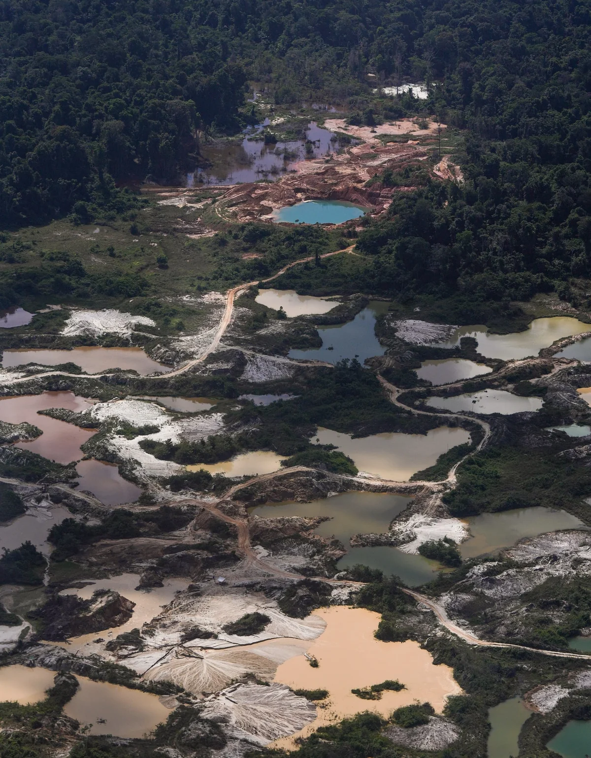 Guyana wird von Regenwald in der Größe Englands und Schottlands bedeckt und ist auf internationaler Ebene eine Art Vorreiter in Sachen Waldschutz. Gleich hinter dem Nachbarland Suriname auf dem südamerikanischen Kontinent wird Guyana als das Land mit dem zweithöchsten Waldanteil gefeiert: 85 Prozent seiner 215.000 Quadratkilometer sind grün. Doch die malerische Landschaft hat zahlreiche Narben: abgeholzte Flächen, Gruben und Absetzbecken aus dem Goldabbau. Besonders deutlich wird dies im Goldabbaugebiet Region 7, einer der zehn Verwaltungsregionen Guyanas.