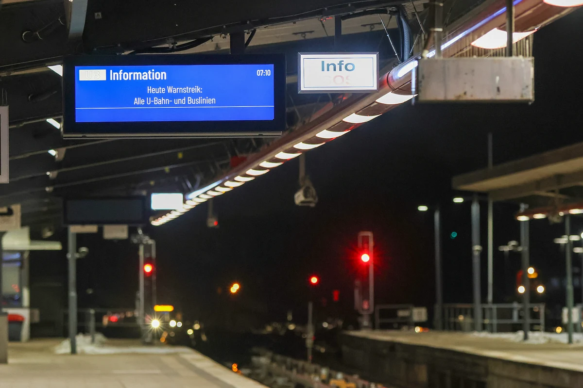 Die Hamburger*innen scheinen trotz des eisigen Wetters gut auf den Streik vorbereitet gewesen zu sein. An den Bushaltestellen vor dem S-Bahnhof Veddel stehen einige Passanten verloren neben der erloschenen Anzeigetafel. Auch in den S-Bahnen und an den Gleisen ist es ruhig. Das Verkehrschaos ist ausgeblieben.