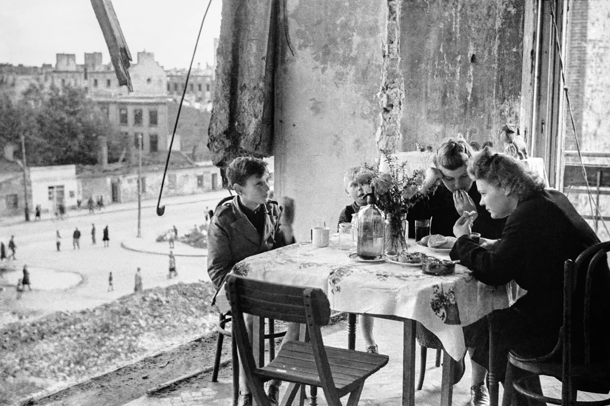 Eine Aufnahme zeigt im Vordergrund drei junge Frauen, die am Rande eines Schuttbergs sitzen und aus tiefen Tellern Suppe löffeln. Ein Lächeln spielt um ihre Lippen, als der Fotograf Zdzisław Wdowiński, damals 25 Jahre alt, auf den Auslöser drückt. Vielleicht ist es Stolz, den die jungen Frauen in diesem Moment zeigen.