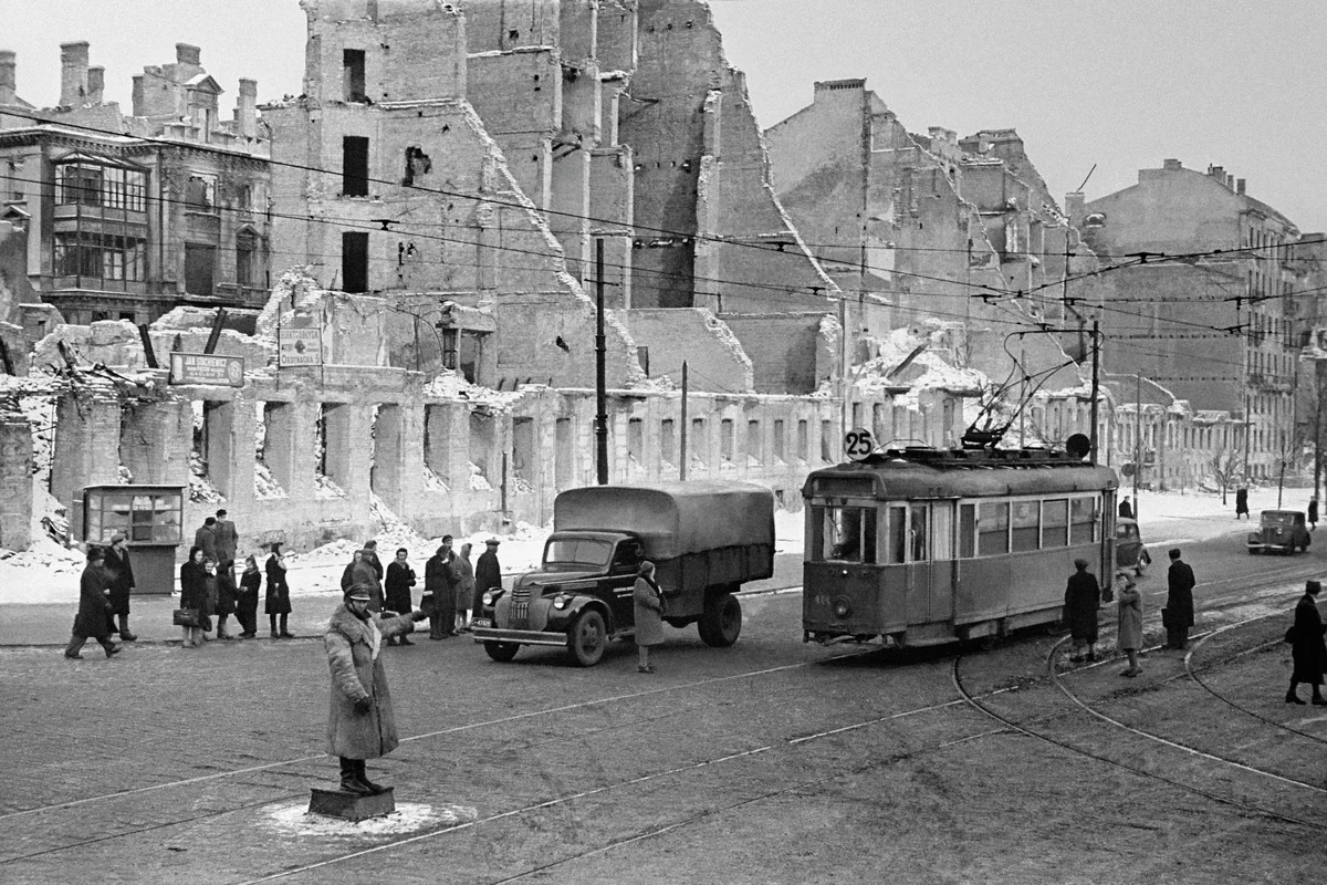 Zwischen Selbstbehauptung und wachsendem kommunistischem Einfluss bewegte sich auch Warschaus Neuanfang. Zur Selbstbehauptung gehörte der Wille, die städtische Infrastruktur wieder in Gang zu bringen. So fahren schon bald nach dem Krieg wieder die ersten Straßenbahnen durch die Ruinen der Trümmerstadt.