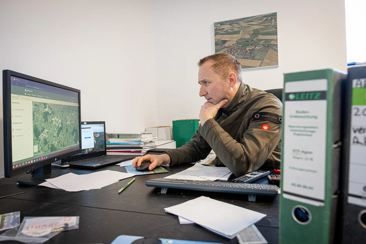 An der Landesgrenze zwischen Niedersachsen und Sachsen-Anhalt tun sich allerdings noch andere agrarpolitische Sollbruchstellen auf. Theoretisch könnten Müller und Schünemann ja viele Daten automatisch auslesen. All ihre Schlepper arbeiten mit Tablets und hochmoderner Software. Jeder Arbeitsgang, von jedem Mitarbeiter auf jedem Feld, wird ganz genau erfasst, genauso wie der Düngemittel- und Wasserverbrauch.