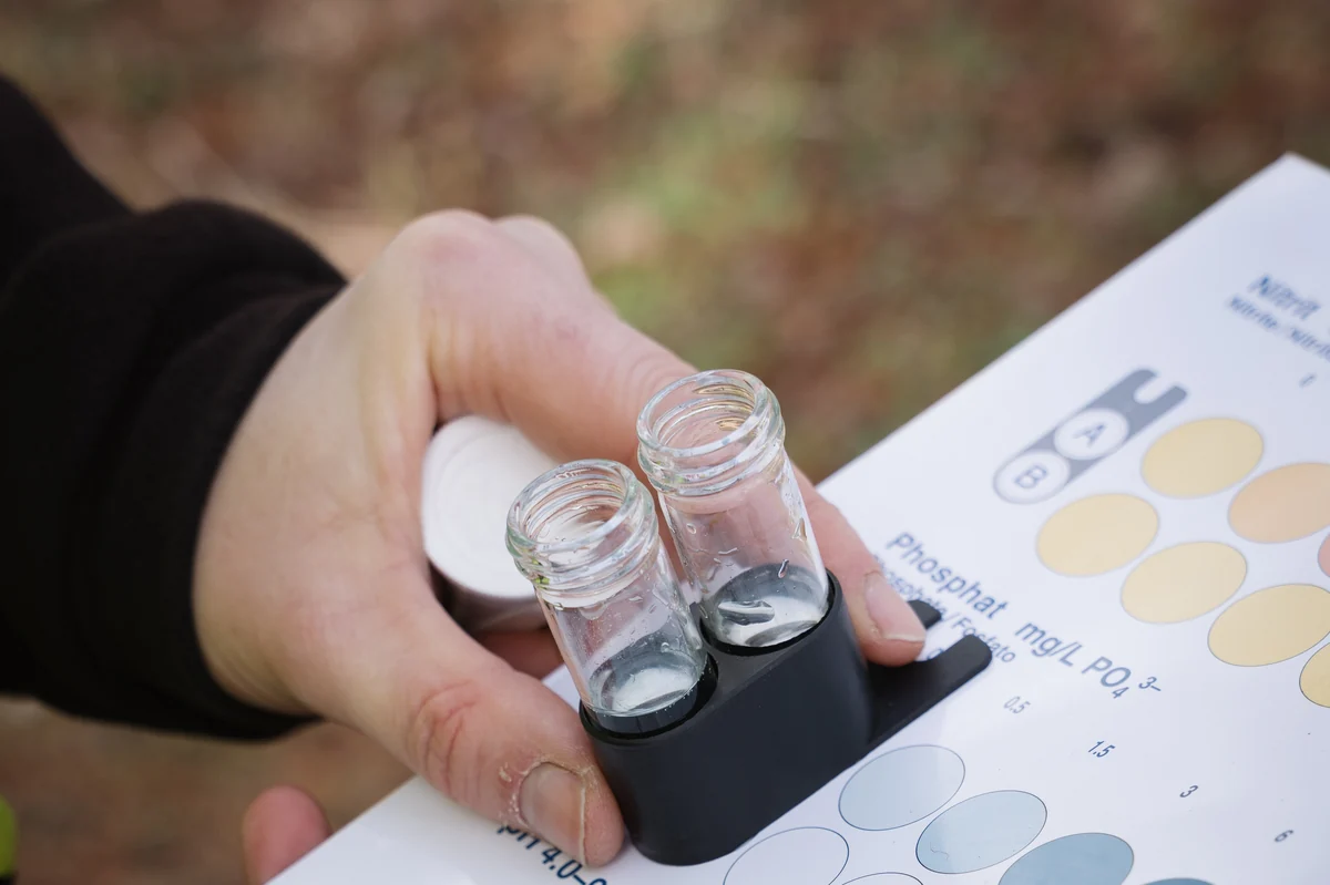 Beim Grundwasserteich stellt sich derweil heraus: Der Wasserzustand ist beschissen. Einen Sauerstoffgehalt von nur 2,9 Milligramm pro Liter zeigt das Messgerät an. „Bei einem Wert unter 3 Milligramm ist das Gewässer für Fische eine Todeszone“, sagt Schweer und guckt besorgt. Als seine Kollegin Julia Hoffmann zwei Stöcke aus dem Wasser zieht, finden sich daran nur ein einzelner Egel und eine Spitzhornschnecke. „Das sind extrem angepasste Arten“, sagt Schweer. Wäre das Wasser in gutem Zustand, müsste es hier Fische, Fliegen oder Libellenlarven geben.