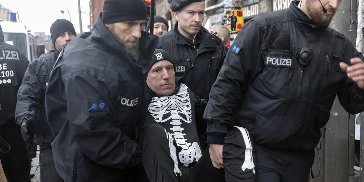 „Hungern, bis ihr ehrlich seid“, nennen sich Metzeler-Kick und seine Unterstützer*innen. Auch auf den Rest der Bundesregierung will die Gruppe Druck ausüben. Der hungernde Aktivist steht am Dienstagmorgen in einem schwarzen Anzug mit weißem Skelettaufdruck vor dem Bundesverkehrsministerium von Volker Wissing (FDP) und verteilt Kopien seines Briefs an Scholz an Passant*innen.